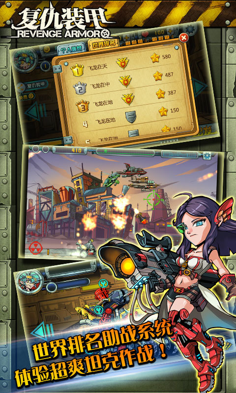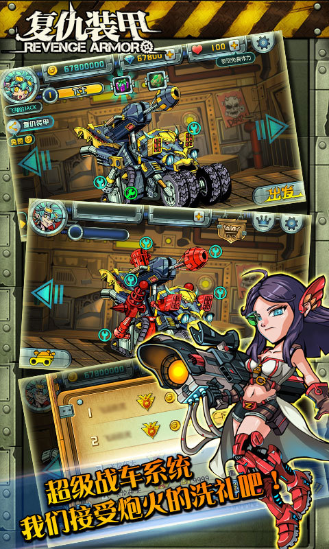 2、游戏中有多个不同配置的战车让玩家选择,并且在剧情的推动下,玩家驾驶战斗在不同风格的场景中。