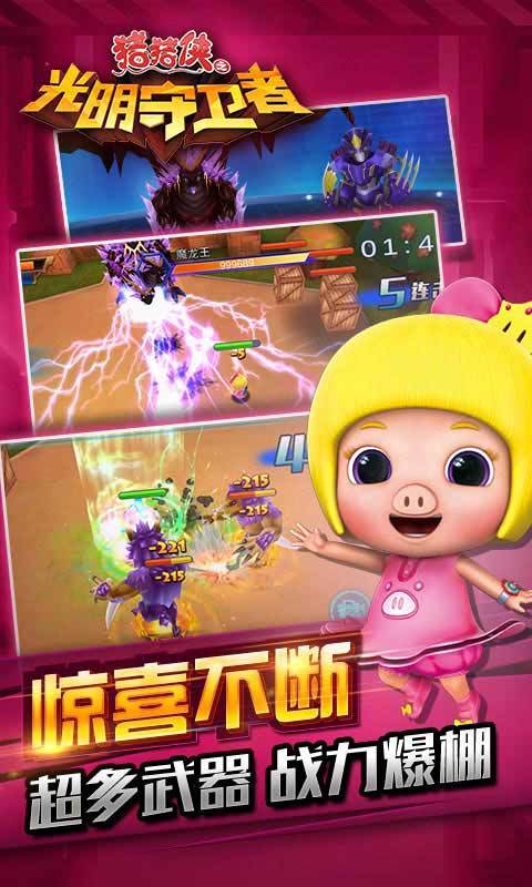 猪猪侠与魔界怪物之间的对决开始了!为了抵抗魔界入侵童话世界,作为光明守卫者的猪猪侠们将要与魔龙王展开决战!猪猪侠为大家准备了抵抗魔界入侵的武器,快来使用各种射击武器及炫酷技能消灭怪物,与猪猪侠一起并肩作战吧!