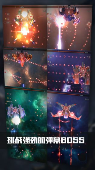 丰富的敌机类型,各具特色的ai行为,BOSS战新高度!Boss拥有多重部件,每个部件都有独特功能。疯狂的弹幕让你欲罢不能。无尽关卡,等你来挑战。