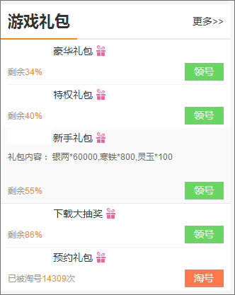 步骤3:或者直接查看“游戏礼包”,点击领号、淘号、预定即可;