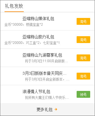步骤2:登录专区首页,查看“礼包发放”的列表;
