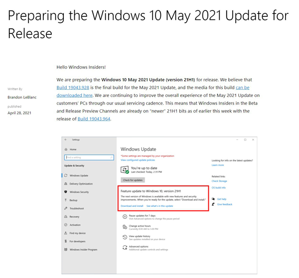 微软已在2021年5月更新中解决了该问题,同时,微软还修复了音频驱动问题,预计将在不久后推送。