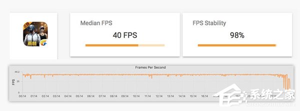 根据帧数曲线不难看出,华为nova 3运行吃鸡游戏相当流畅稳定,唯一的帧数下降只出现在战局结束后的2D界面,也就是说除去这些干扰,华为nova 3游戏过程几乎维持在游戏软件限制的40帧满帧。GameBench显示帧数稳定率达98%,相当亮眼的数据。