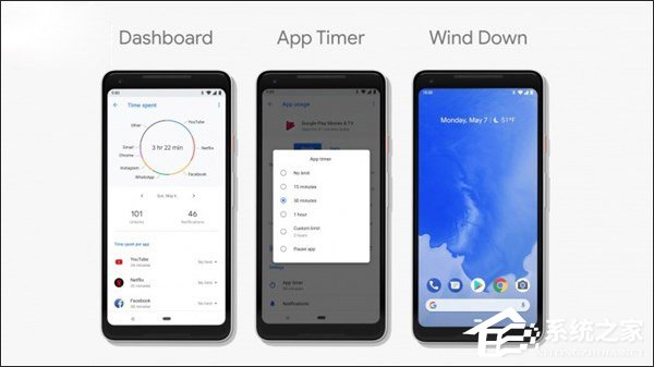 Android P新的信息中心会显示你在应用中花费了多少时间,解锁手机的次数以及收到的通知数量。开发人员将能够提供更多关于你在应用程序中所做内容的细节。例如,YouTube会为你提供观看视频的总时间。