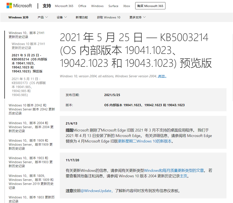 https://support.microsoft.com/zh-cn/topic/2021-%E5%B9%B4-5-%E6%9C%88-25-%E6%97%A5-kb5003214-os-%E5%86%85%E9%83%A8%E7%89%88%E6%9C%AC-19041-1023-19042-1023-%E5%92%8C-19043-1023-%E9%A2%84%E8%A7%88%E7%89%88-8a58ac95-cf5e-4032-9272-23de9ee1d186