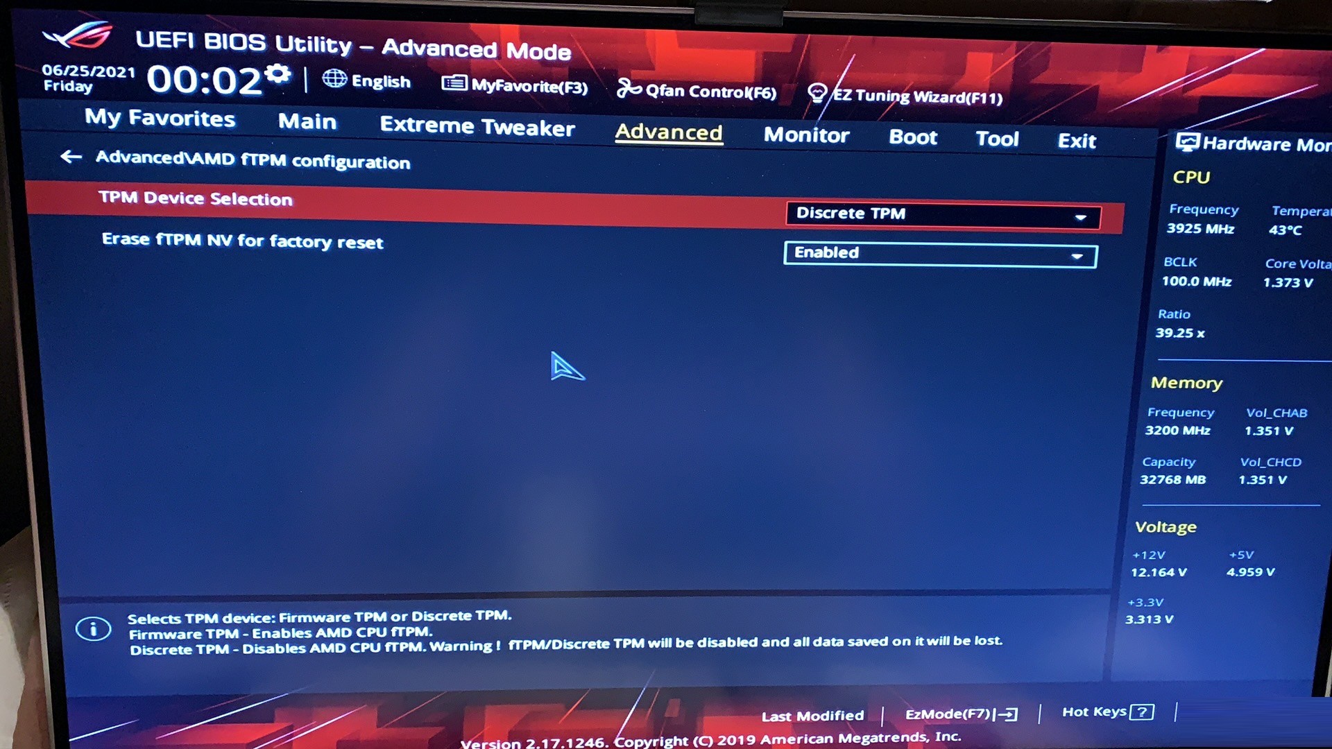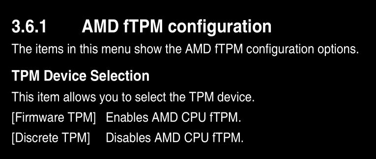 但AMD和Intel实际上都有CPU内置的TPM模块可以使用,AMD平台叫fTPM: