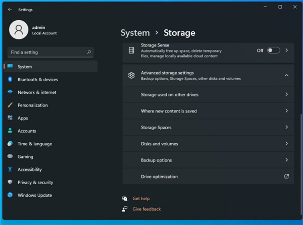 其次,Win11设置应用重新设计了“存储管理”工具,能够通过检测本地磁盘上较旧和未使用的文件来释放驱动器上的空间。