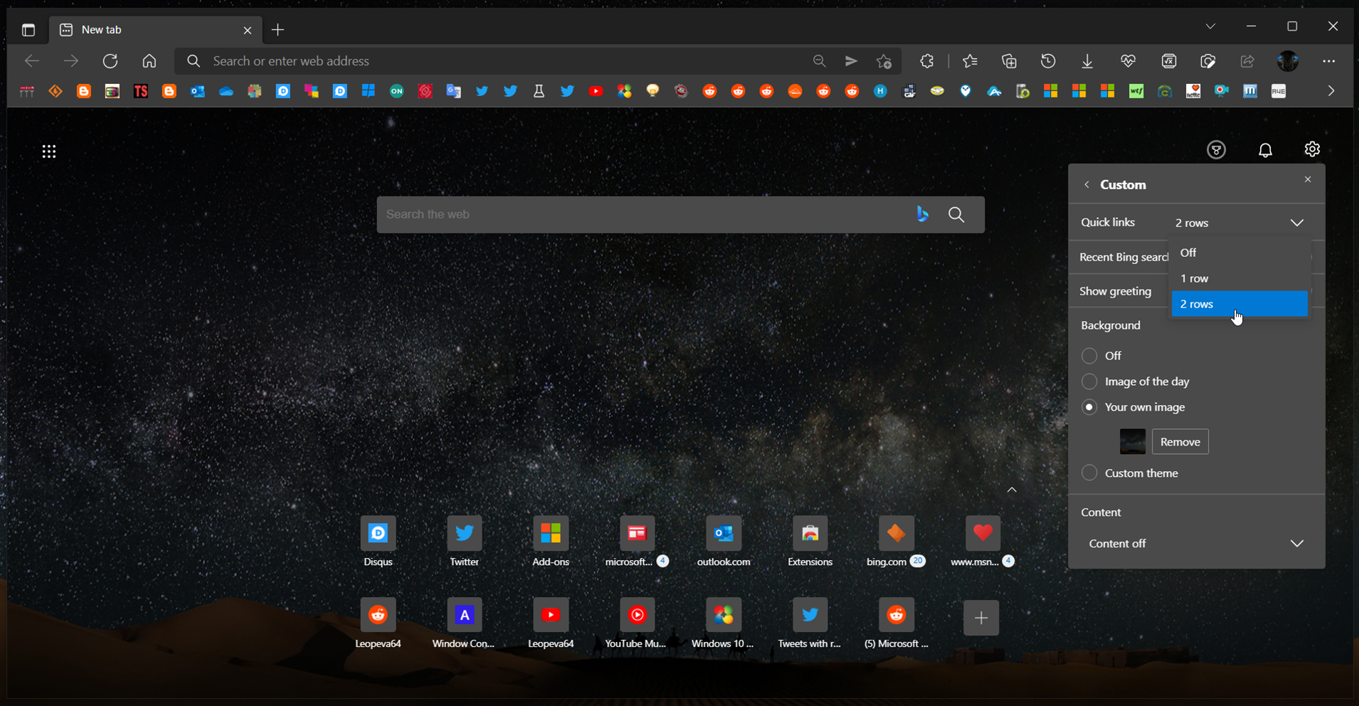 像往常一样,Leo Varela报告了 Microsoft Edge 中的更改,在这种情况下是在新选项卡区域中。该区域现在有两行指向我们最常用页面的快捷方式。