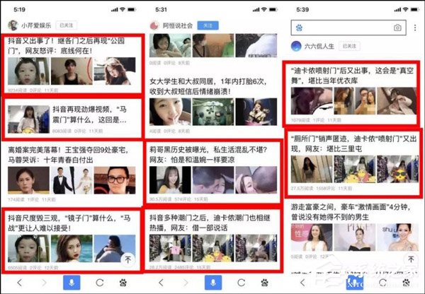 这些谣言制造了抖音的“公园门”、“迪卡侬门”、“黑马门”等内容。这些“XX门”的文章,延续了此前抹黑抖音的“马桶门”的思路:指称抖音故意放纵色情视频在站内传播,来吸引眼球、流量。