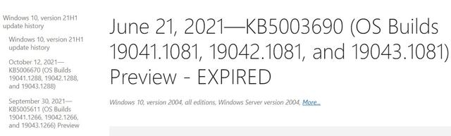 Windows 更新会定期评估是否过期,“过期”状态会出现在微软的网站上,如上面的截图所示。