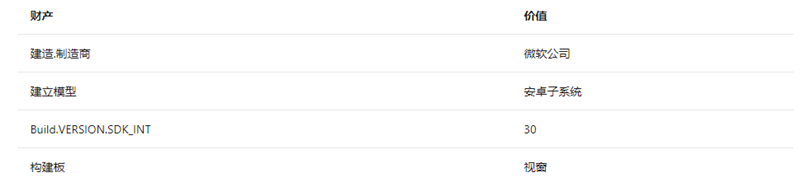 下面列出了适用于 Android VM 的 Windows 子系统的属性。不建议对这些值进行硬编码,因为这可能会导致未来的不兼容。