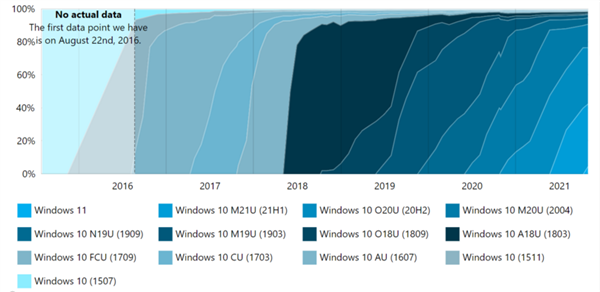 报告中还显示,Windows 10 21H1版现在是最受欢迎的Windows 10版本,市场份额为37.6%,其次是20H2版,占34%。像往常一样,这个相对较小的样本并不能够对Windows生态系统提供完全准确的描述,该系统现在包括超过10亿台设备。