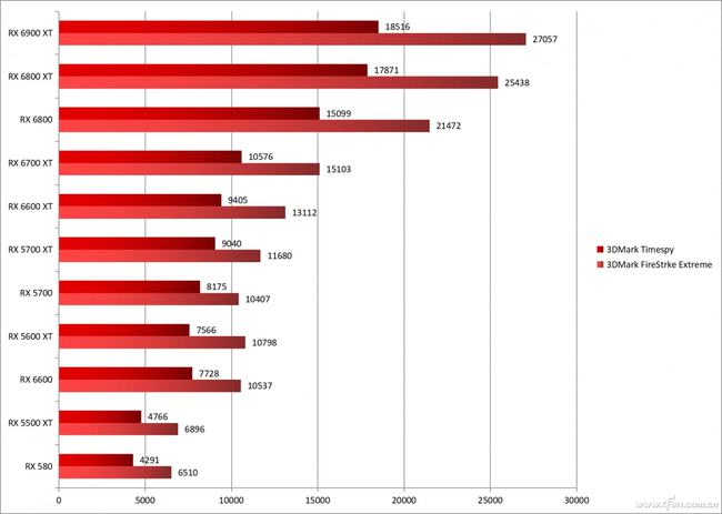 从测试得分可以看出,新一代显卡的能力非常出色,基本形成了跨级提升,例如所谓的入门级型号RX 6600的性能已经超过了之前的主流型号;主流型号RX 6600 XT的更是明显高于上一代中高端产品RX 5700 XT。当然由于近期价格的变化,性价比方面没有特别大的提升,希望价格平稳后这种局面能有所改变吧。