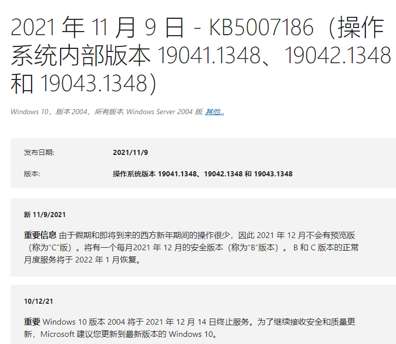 微软今天凌晨推出了最新的Win10 11月累计更新补丁KB5007186,此次版本更新依然未解决打印机的bug,更新后打印机可能无法使用!微软已经在已知的问题已经告知,大家可以根据自己的实际情况更新!