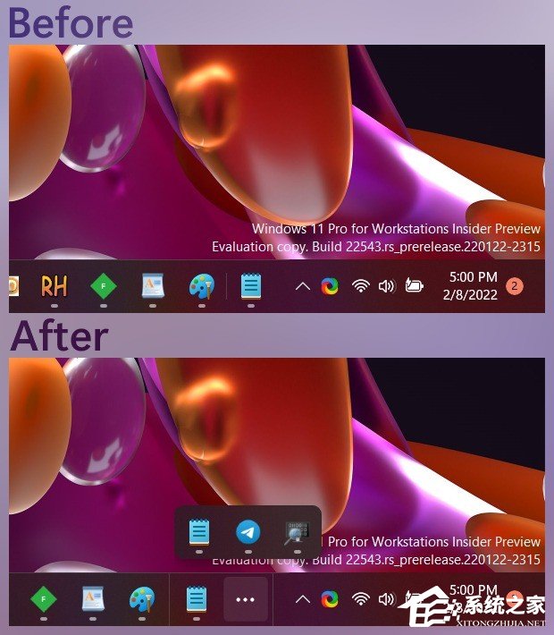 溢出菜单的概念目前还不是很清楚,但我们知道这一变化也可能会在未来重新支持可调整大小的任务栏。