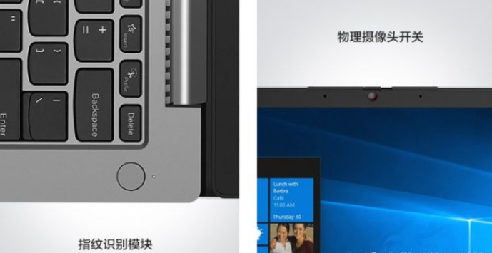 联想扬天S14配备了指纹识别功能,支持指纹开机设定,保护用户的隐私。电脑的上方配置了一个物理摄像头,不用的时候也是可以手动关闭摄像头的。