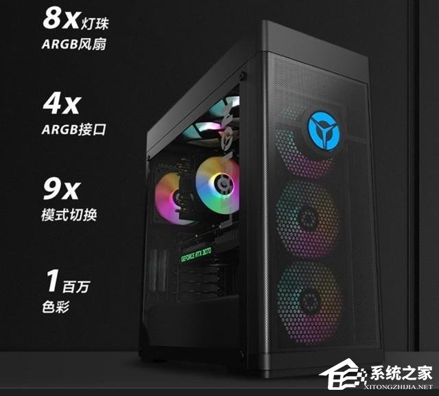 而在设计方面联想拯救者刃9000亦有很多看点:机箱为34L全景侧透,而且正面还有“星环Y”灯效。不止于此,前面提到的7个风扇,全都支持RGB,而且可自定义,有9种模式可调,色彩超一百万,绝对酷炫。CPU散热器以及机箱上的后风扇均升级支持幻夜魔光,而这个幻夜魔光系统由第一代RGB升级而来,5v Addressable RGB的每颗灯珠均可编程定义,同时可显示多种色彩,随着时间流逝,更可显示千万梦幻彩光,效果自然也没的说。
