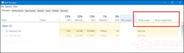 监视器中新增功耗/功耗趋势一栏,可查看应用的功耗高低。