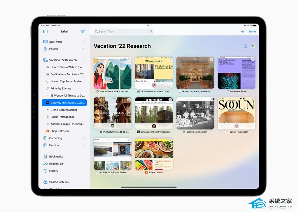 Safari 浏览器还增加了共享标签页组,以便与朋友和家人批量分享网站,让添加标签更加顺畅,还能看到其他人正在查看的内容。
