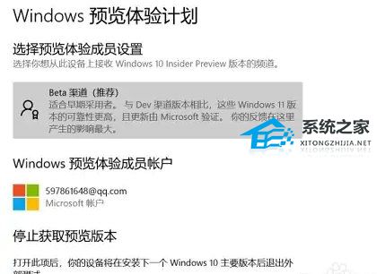 3、登录完成后重新回到预览体验计划,加入并选择“beta渠道”。