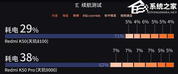 这里可以看出,天玑9000的耗电量更大一些。