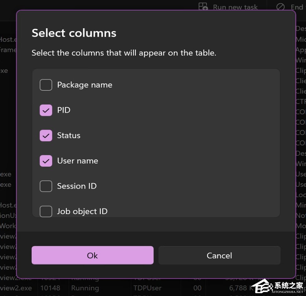 任务管理器现在还支持应用内对话框的主题。除“运行新任务”和“属性”对话框之外的所有对话框现在都支持主题,并将遵循应用特定主题或 Windows 主题。