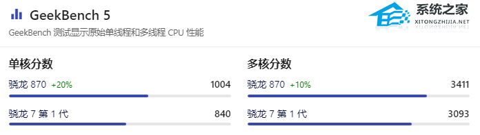 就Geekbench5的跑分来看,无论是单核还是多核,骁龙870的分数都是比骁龙7 Gen1要好的。