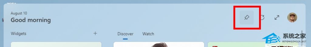 小部件板顶部的新固定图标可将小部件板固定为打开状态。