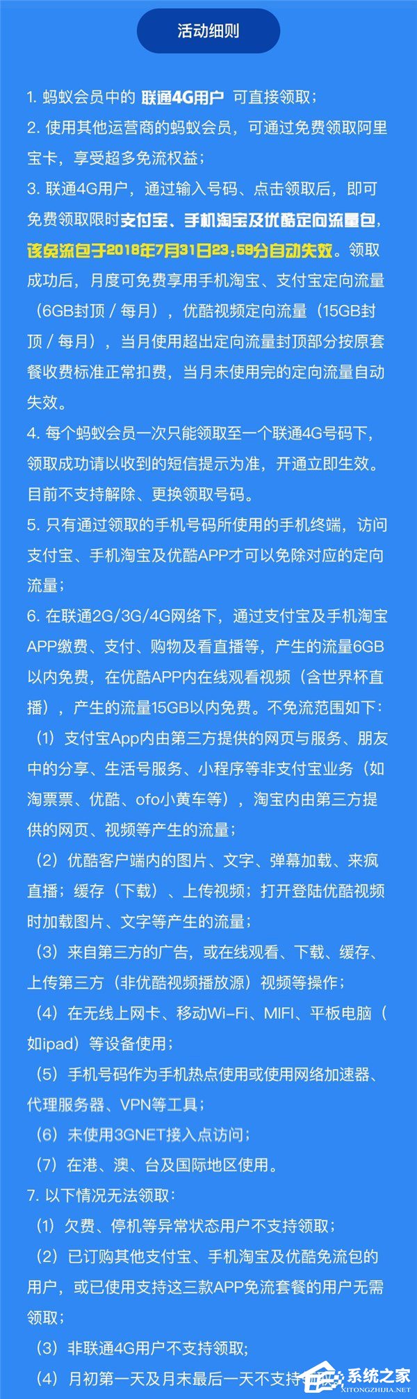 领取方法:打开支付宝App,点击底部“我的”,在打开“蚂蚁会员”,随后在滚动banner中找到“免流量特权”,点击之后会有授权确认信息,确认过后填写联通4G手机号即可。