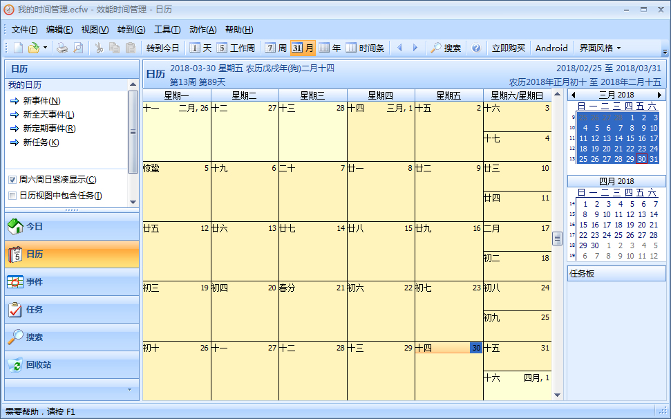 效能时间管理是一款专业、美观、易用的日程安排和任务计划管理软件,现在就使用效能时间管理软件来帮助您管理时间、节约时间进而掌控时间,迈向高效、快乐、成功之路吧!