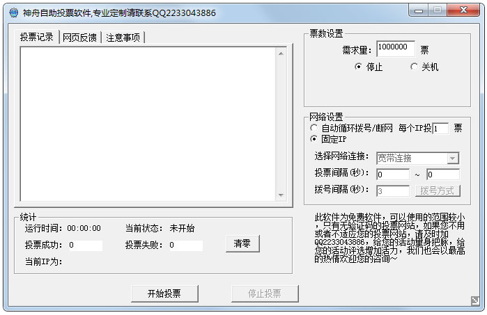 神舟自助投票软件是一款最新刷票工具,神舟自助投票软件功能强大,速度快,适用于大部分网站投票评选活动,可以自动投票,换IP等,有需要的用户欢迎下载使用体验!使用简单,全自动进行刷票,无需人工干预