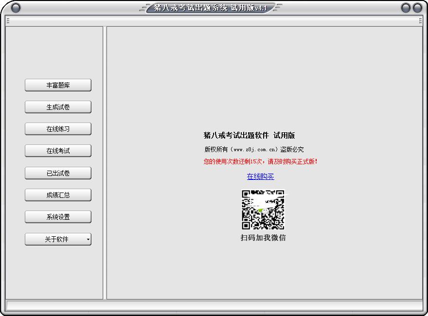 猪八戒考试出题软件破解版是款可以免费使用的考试出题软件,它可以帮助出题者快速生成各类专业题型,快速做出一个满意的试卷,用户可以在短时间内轻松完成试题录入、组卷、排版等工作,并可以根据配置参数生成试卷和答案,实现了题库与试卷统一和规范化管理,操作简单,方便快捷,非常好用。