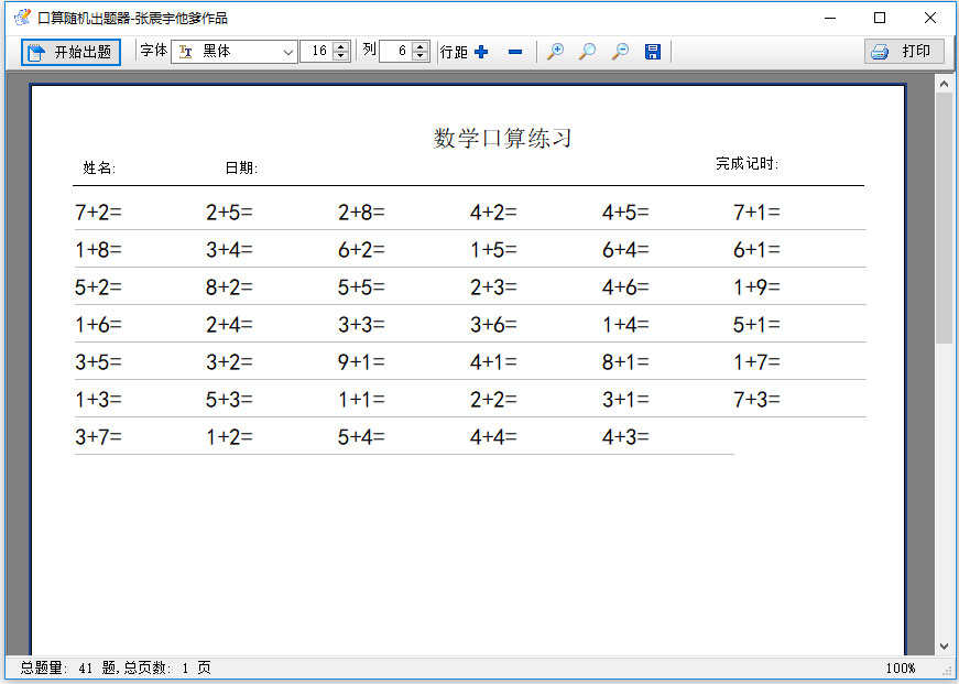 资料分析随机数出题软件是一款简单的四则运算口算出题器,可以生成从0到999的随机四则运算题目,支持自动出题,出一题做一题自动判断,软件适合需要打算大量练习资料分析的四则运算的用户使用。