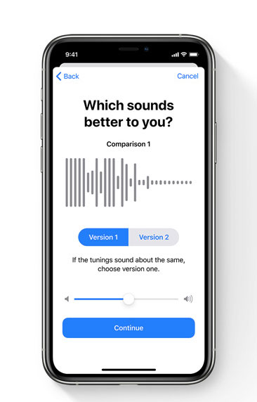 AirPods 音频可根据不同听力需求来调整。耳机调节功能可放大微弱的声音,并可按照用户的听力需求进行调节,让音乐、通话和其他声音都更加清脆。