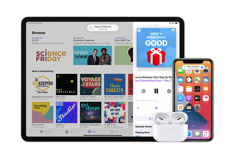 在 iOS 14 当中,无需进行手动设置, AirPods 能在不同设备之间无缝切换配对。比如当用户结束 iPhone 上的通话,拿起 iPad 准备听播客时,AirPods 会自动切换过来。