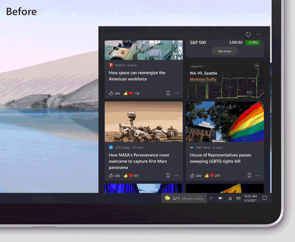 感谢您对Windows任务栏上的新闻和兴趣的持续反馈!今天,我们很高兴开始推出一个新的设计,这使得它更令人愉快的扫描和互动的头条新闻和故事在您的饲料。从文章的图像现在闪耀通过一个充满活力和丰富多彩的设计,使您的饲料更可浏览,引人入胜,和美丽。