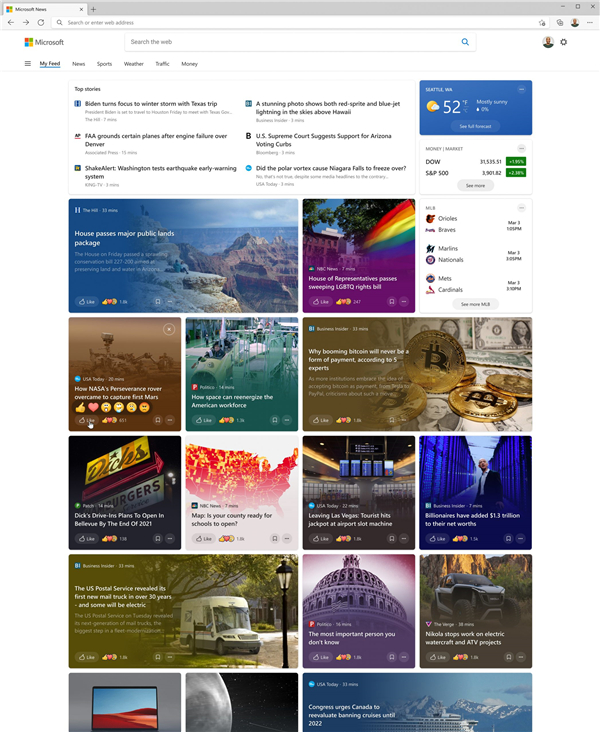 当您单击“查看更多新闻”时,会有更多的更新。在浏览器中打开的新源体验经过重新设计,可帮助您一目了然地赶上头条新闻,并享受充满活力的源,让您的个性化故事曝光。较大的卡片现在也可以显示文章文本,帮助您在潜入之前了解主题。