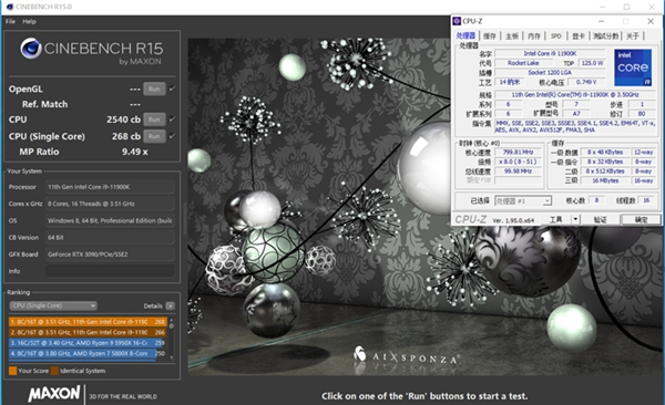 i9-11900K在CineBench R15中,单核成绩相比i9-10900K提升了18%,不逊于顶级Zen3处理器。
