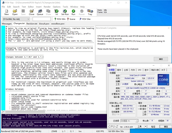 在POV-Ray中,i9-11900K的630PPS的单核成绩同样也是最强。