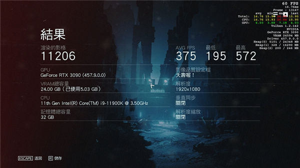i9-11900K分数是56434,换算成帧率则是340FPS。