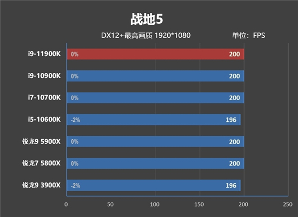 和对手相比,i9-11900K的帧率与锐龙7 5800X是在伯仲之间,比锐龙9 5900X弱了2%左右。