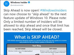 前些天有国外媒体报道称,微软已经重置了Skip Ahead跳跃预览通道,并将所有的Win10 Insider测试从Skip Ahead移至Fast Ring!而据最新消息显示,微软日前又公开宣布,其已经再次开启了Skip Ahead通道。...