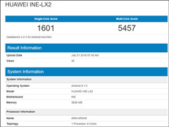 • 华为麒麟710处理器GeekBench跑分首曝光