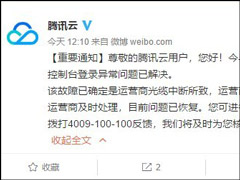 • 已恢复服务!腾讯云官微回应异常宕机事故