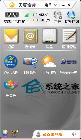 “天翼宽带客户端”是中国电信为用户提供的宽带接入和应用集成软件,可对中国电信天翼宽带WiFi、天翼宽带3G、天翼宽带1X以及有线宽带网络进行接入,为用户提供“无处不在”的网络接入能力,并通过集成简便实用的多种应用带给用户“无所不能”的应用感知。