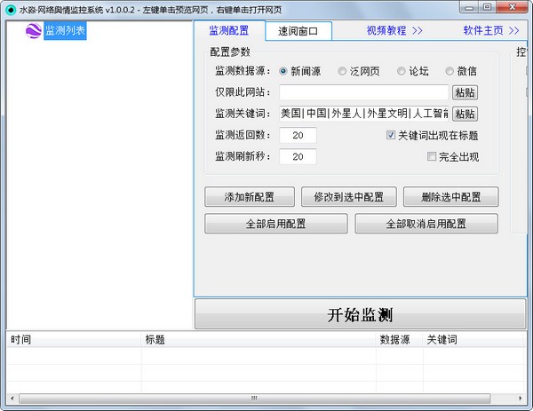 当监控到有最新网页时,软件会在列表框中的最前位置列出,并且会有一个提示音。