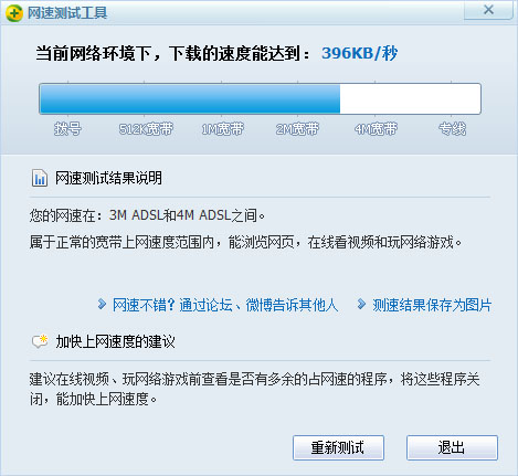 测试时不要打开在线视频和下载工具,如迅雷,旋风等,否则将影响测试结果。