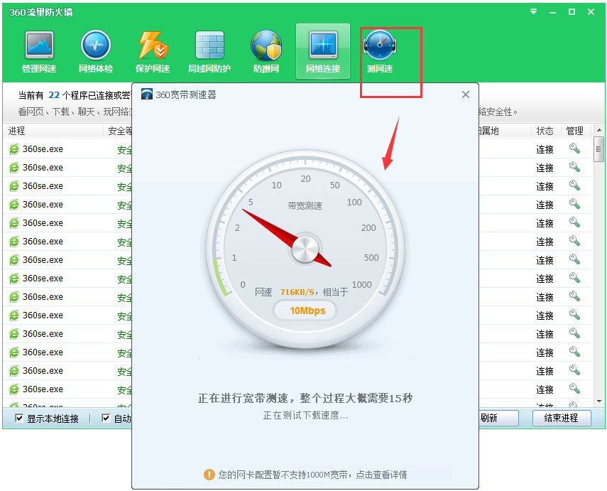 6.日后即可从360悬浮窗看到网络实时使用情况;