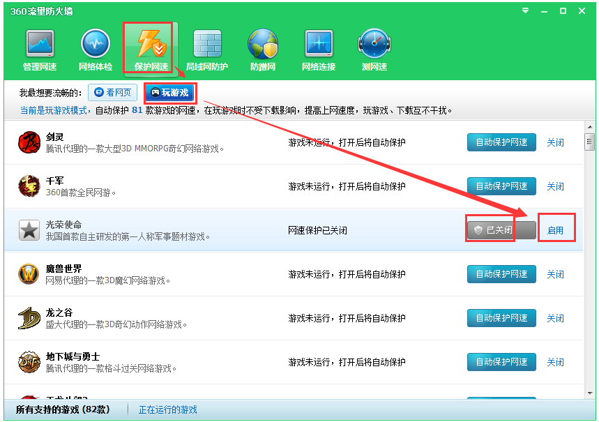 具体来说,如果用户只需通过浏览器看网页,避免其他网络软件对带宽的占用,只要在“流量防火墙”中启用“看网页”模式后,“流量防火墙”就会将有限的带宽全部挪给浏览器使用,确保浏览顺畅。玩游戏时,只要启用“玩游戏”模式,“流量防火墙”又会将系统带宽最大限度地让给游戏软件使用,尽量避免游戏过程中出现卡顿现象。