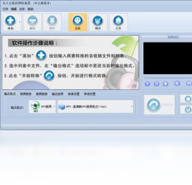 一款专业的音频格式转换工具,视频音乐提取工具。凡人全能音频转换器支持目前所有流行的音频,可以在各种流行音乐格式之间随意转换。如可以在常见音频MP3、WAV、WMA、CD、AC3、OGG、AAC、MP2、FLAC、RM、RA、AMR等音频格式之间相互随意转换。最为强大的是,本转换器可以从各种视频格式中提取出音频文件,支持从RM、RMVB、AVI、VOB、DAT、VCD、SVCD、DVD、MKV、ASF、WMV、MP4、3GP、MOV、QT、MPEG、DivX、XviD等各种视频格式中提取音频,并转换为MP3、WAV、WMA、AC3、AAC、OGG等流行的音频格式,满足用户的随时欣赏音乐的需求。并针对常用的应用如WAV转MP3,MP3转WMA,WAV转WMA,RM转MP3,AVI转MP3,RM转WMA等功能进行全面优化,转换速度极快,音质极高。支持从CD光盘中抓轨功能,支持批量转换,自动关机,为您节省了宝贵的等候时间。